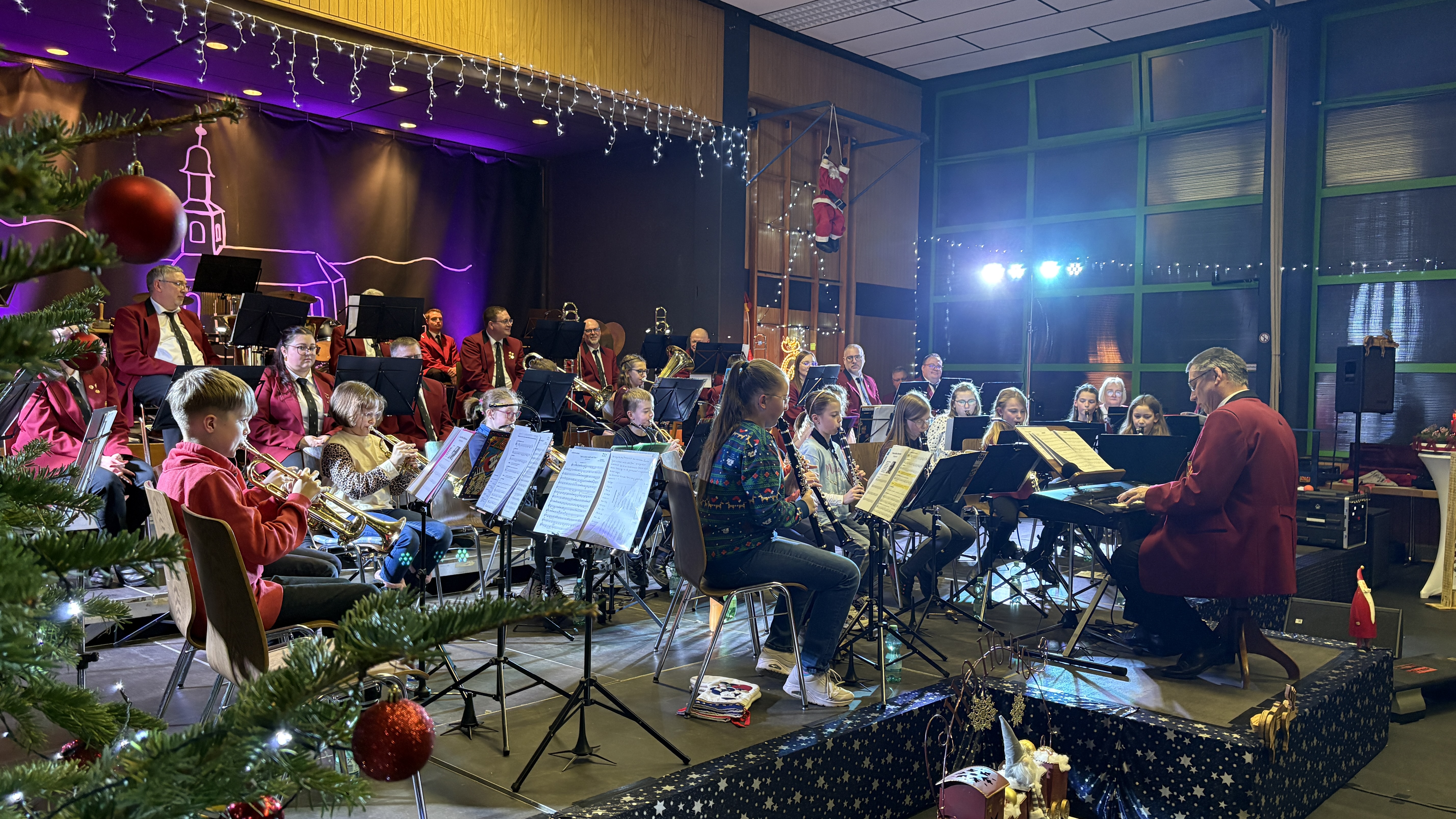 Ein Höhepunkte war die Premiere des neu formierten Jugendorchesters. Dritt- und Viertklässler der Grundschule Dahlheim, verstärkt durch Jugendliche aus der Bläserklasse der IGS Nastätten, präsentierten vier Weihnachtslieder. Seit Beginn des Schuljahres besteht eine Kooperation des Orchesters mit der Grundschule. Unter der Leitung von Barbara und Elmar Mehl erhalten die Kinder elementaren Musikunterricht auf Blasinstrumenten. Das Publikum war verblüfft, welche Lernergebnisse bereits nach nur vier Monaten zu verzeichnen sind. In einem engagierten Statement warb Elmar Mehl dafür, dieses Projekt zu unterstützen und jedem Kind die Möglichkeit zu eröffnen, ohne finanzielle Einstieghürden ein Musikinstrument auszuprobieren.